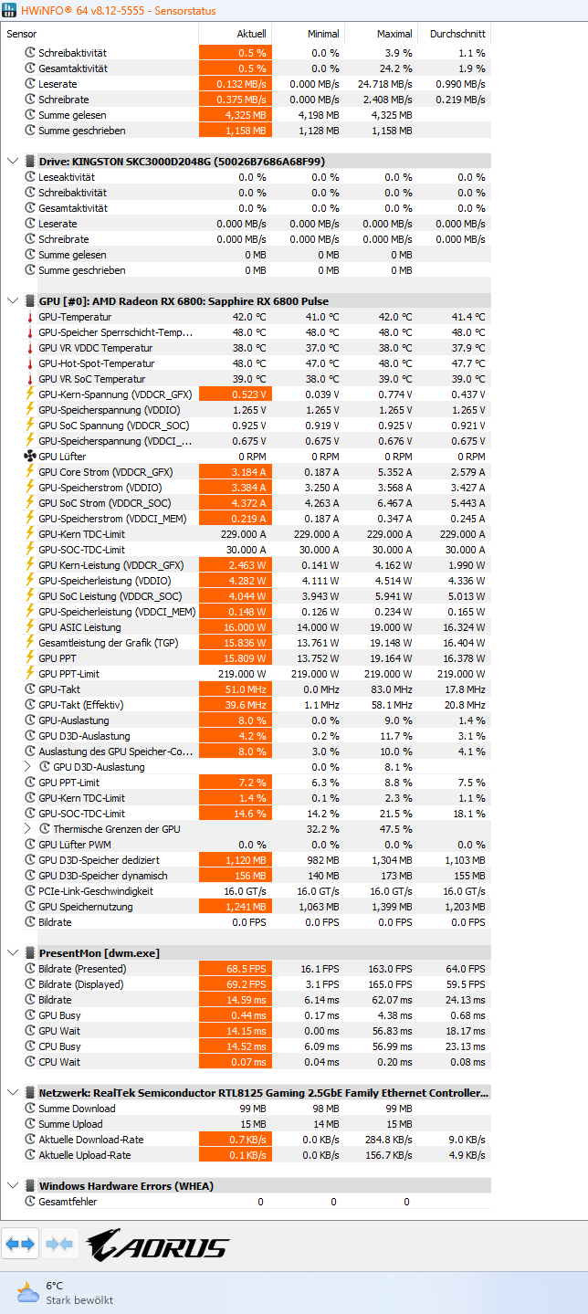 - Grafikkarte: AMD Saphire RX6800 16GB