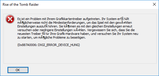 Der Rechner läuft soweit sehr stabil, solange ich keine Spiele spiele. Ich habe bisher Rise Of the Tomb Raider, Just Cause 3 und Playerunknown´s Battlegrounds gespielt. Das Spiel stürzt nach kurzer Spielzeit ab. Es variiert bei der Spielzeit, mir ist aufgefallen, dass bei erhöhter Grafiklast eher passiert. Ich habe alles auf niedrig eingestellt, es sürzt dennoch ab.