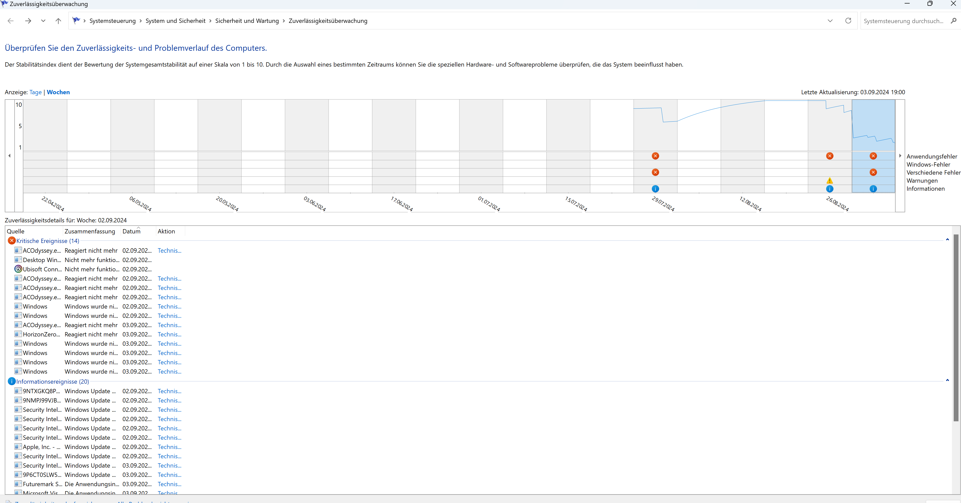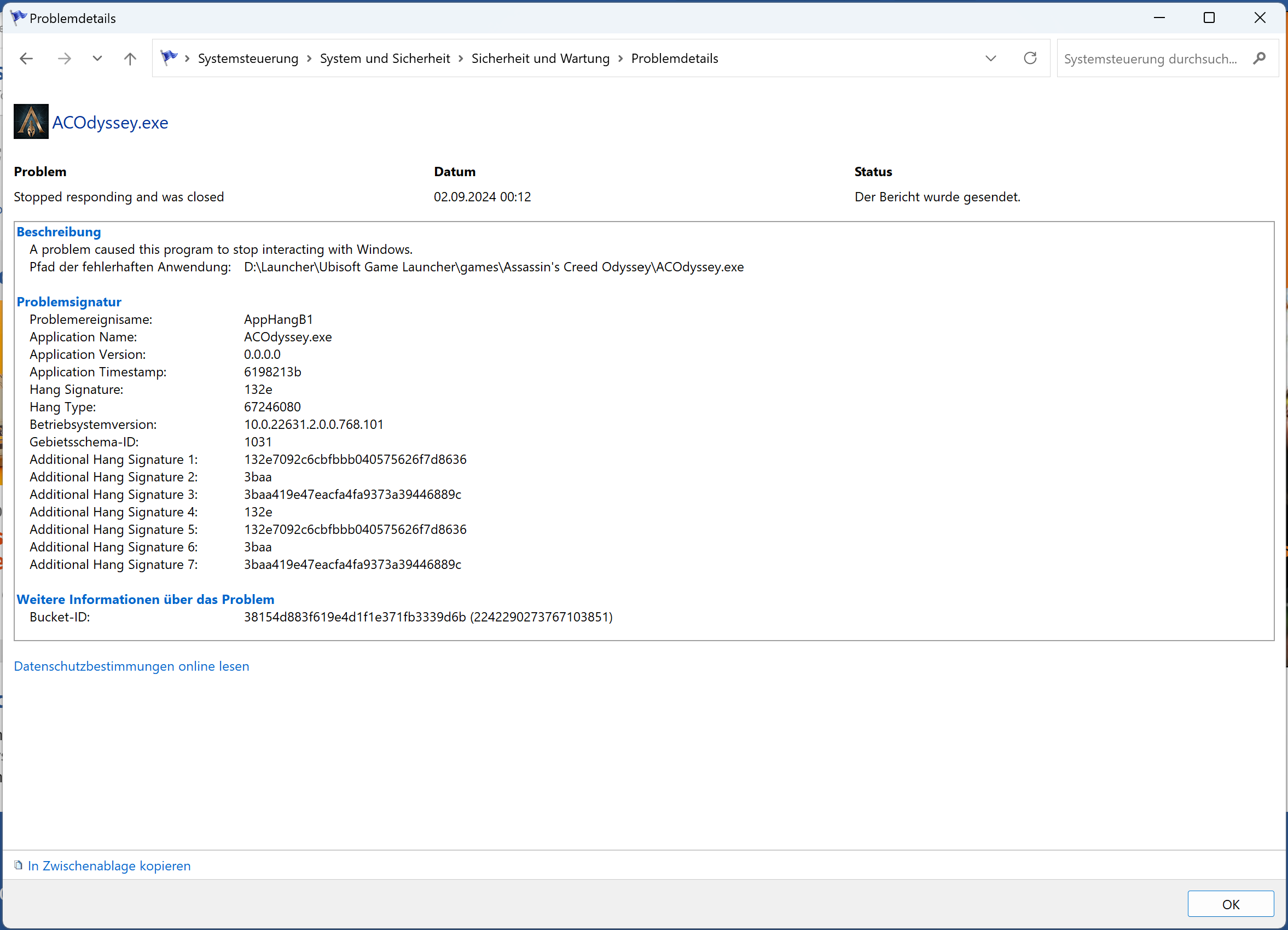 Das Problem ist, dass die Spiele seit kurzem immer abstürzen bzw. einfrieren. Ich sage seit kurzem, weil der PC nicht neu zusammengestellt wurde. Ich habe den PC bereits länger und auch schon einige Stunden gespielt. Erst seit kurzem tritt dieses Problem auf. Ich kann mich leider an keine "Aktion" erinnern, die das Problem ausgelöst haben könnte und was ich einfach rückgängig machen kann. Zuerst dachte ich, wie bereits in dem oben verlinkten alten Thread erläutert, dass es nach dem Einschalten von EXPO auftrat. Aber da die Spiele auch nach Zurücksetzen vom EXPO auftreten, war das wohl einfach nur Zufall.