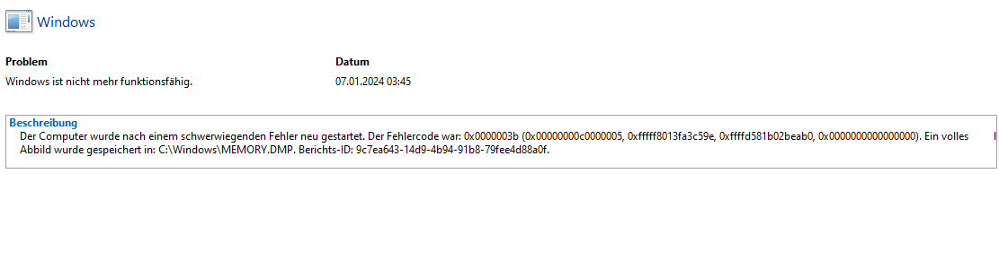 Und im Zuverlässigkeitsverzeichnis sind die Fehler immer .dll Datein. Und die Anwendungen crashen ja auch direkt beim Start wo eigentlich ja noch gar keine große Belastung auf der Hardware sein sollte.