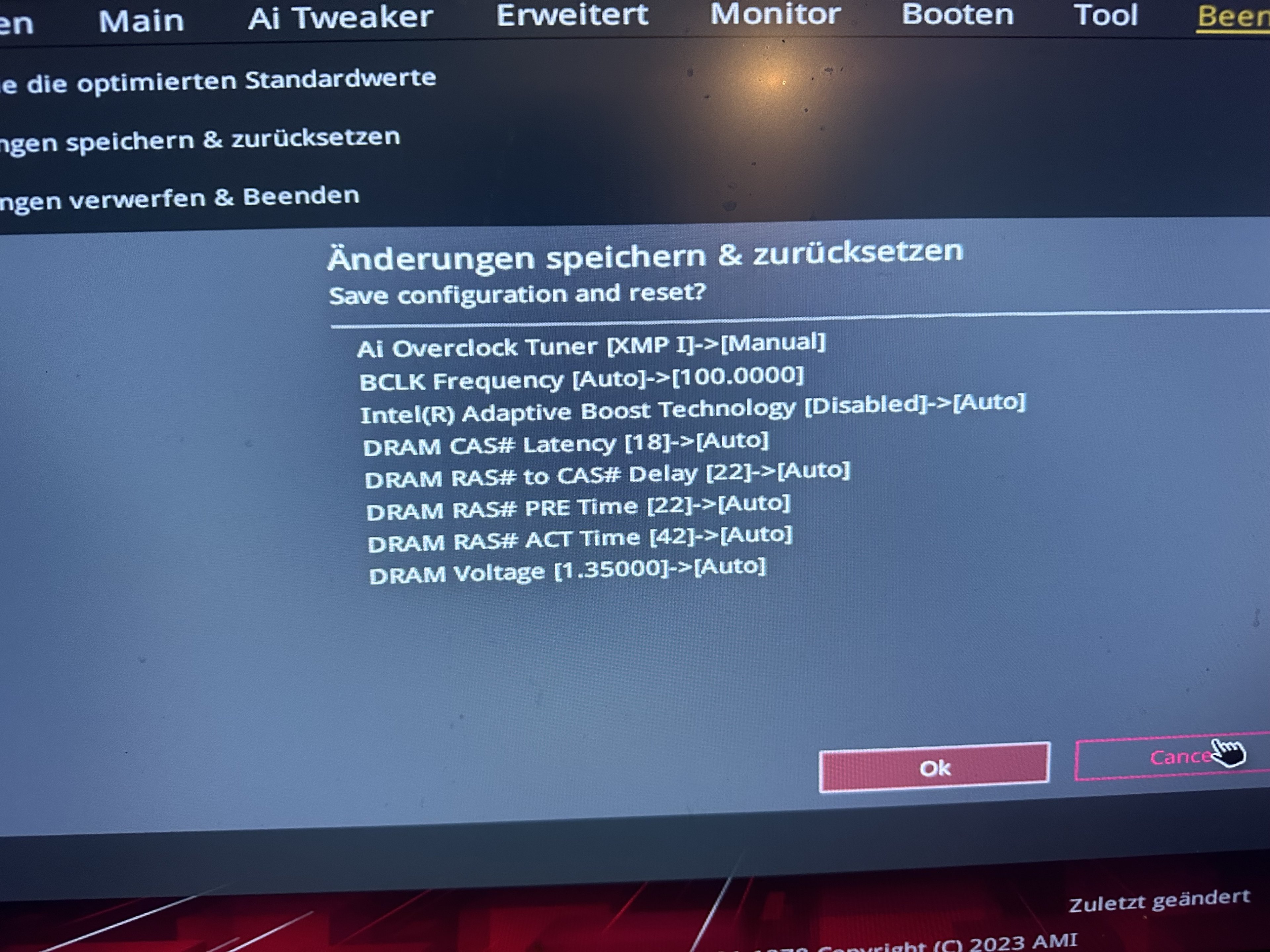 Wenn man von Xmp auf manual umstellt mĂŒsste da was erscheinen. Es könnte der RAM , der Ram controller der CPU aussteigen....