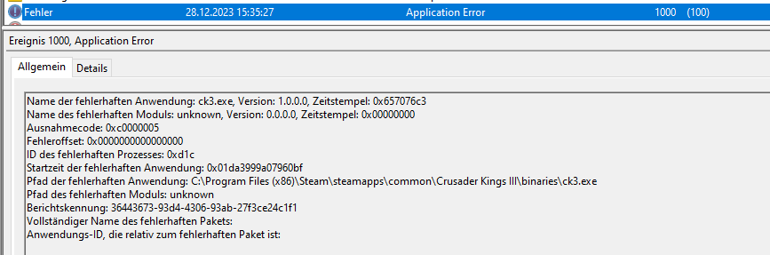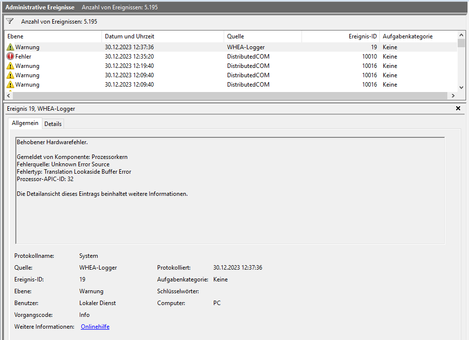 Ich habe mir ein neuen PC zusammengestellt. Dieser hat nun ca. 2 Monate ohne Probleme funktioniert. Seit neustem stürzen aber Spiele wie Cyberpunkt, Crusader Kings 3 oder CS2 ab. Dies geschieht meistens nach ca. 20 min oder einer Stunde. Das Spielt zeigt meistens einen Crash-Report an, welchen man abschicken könnte. Im Eventlogger kommt dann ein Fehler für Application Error oder nur WHEA-LOGGER und DistrobutedCOM.