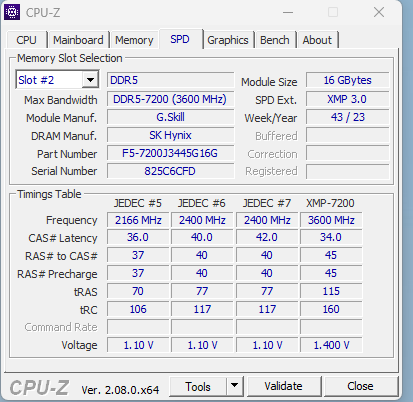 - Arbeitsspeicher (RAM): 2x 16GB G.Skill Trident Z5 RGB - DDR5-7200, CL34-45-45-115