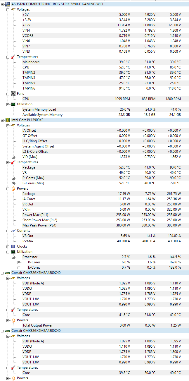 - Mainboard: ASUS ROG STRIX Z690-F GAMING WiFi