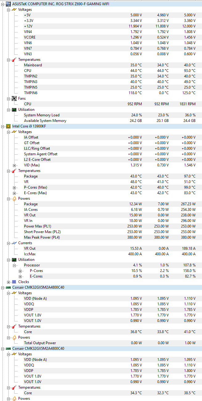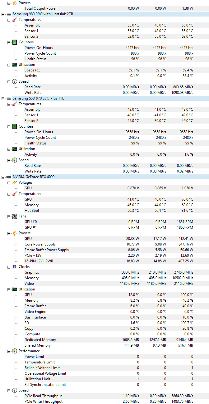 Anbei einmal Fotos von den Höchstwerten aus HWMonitor nach dem Crash bei Life is Strange Double Exposure und Star Wars Online