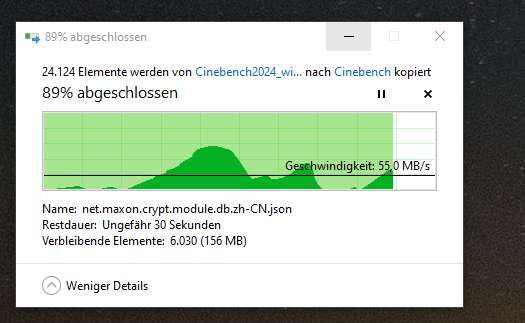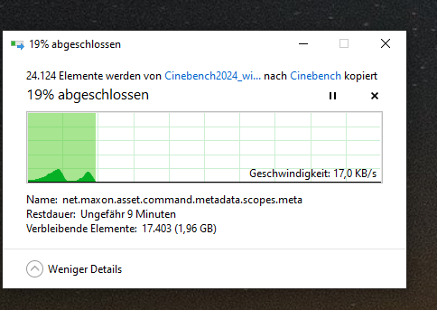 Außerdem ist mir aufgefallen das beim entpacken von Cinebench die Geschwindigkeit teilweise auf 10kb/s gedroppt ist das max. war 40mb/s siehe Screenshot. Was auch recht komisch scheint.