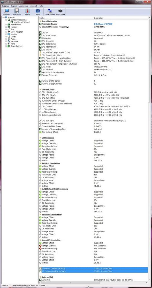 So, siehe Anhang:-)alberts2 schrieb:Du könntest mal in Hwinfo nachschauen welche AC und DC loadlines eingestellt sind. Findet du so