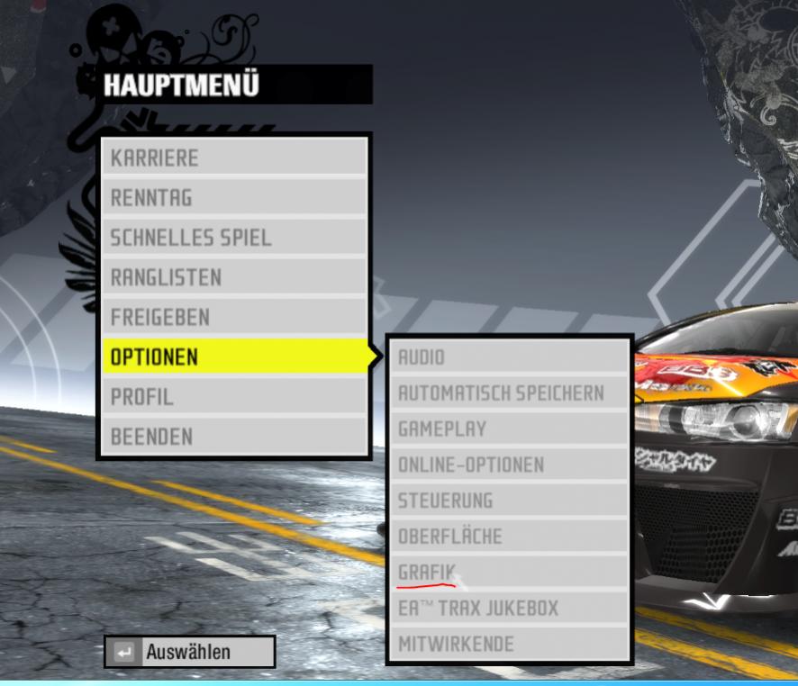 Pro Street hab ich auf 1280x 768 gestellt- Details 2 x AA und sonst alles auf Hoch ( in den erweiterten Einstellungen.)