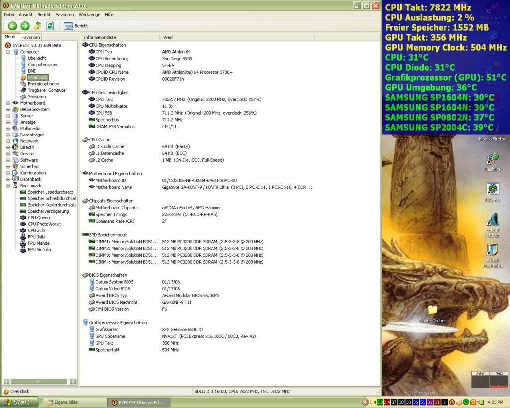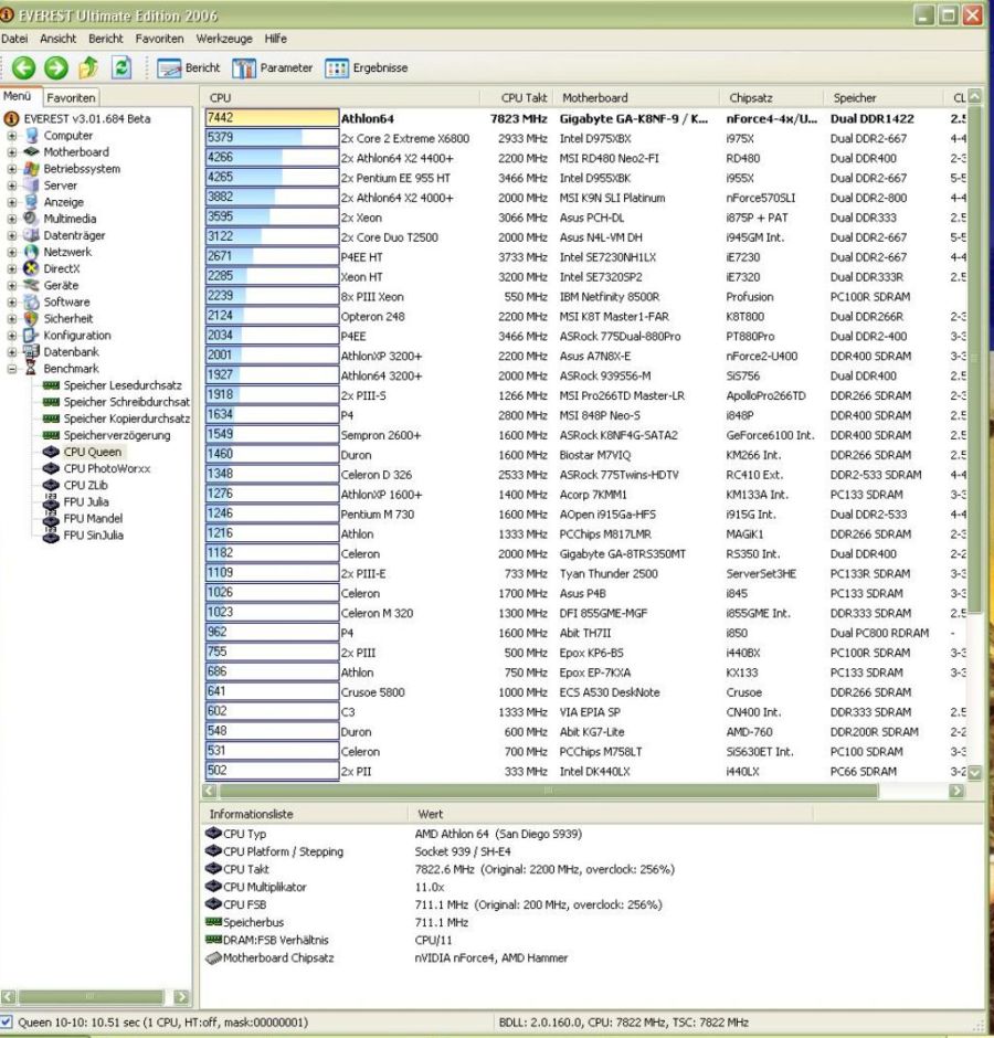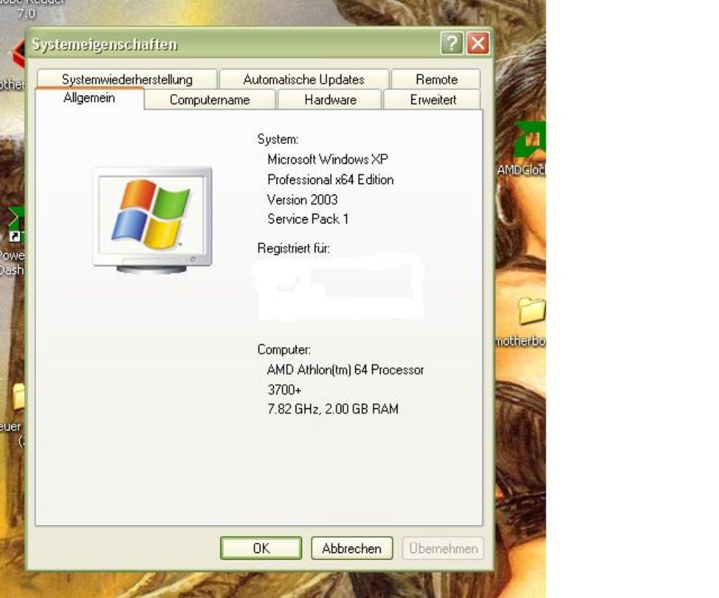 Hab da ein kleines Problem. Meine Systemeigenschaften zeigen meinen Athlon 64 3700+ mit einer Taktfrequenz von 7822MHz an da stimmt doch etwas nicht, oder wie?