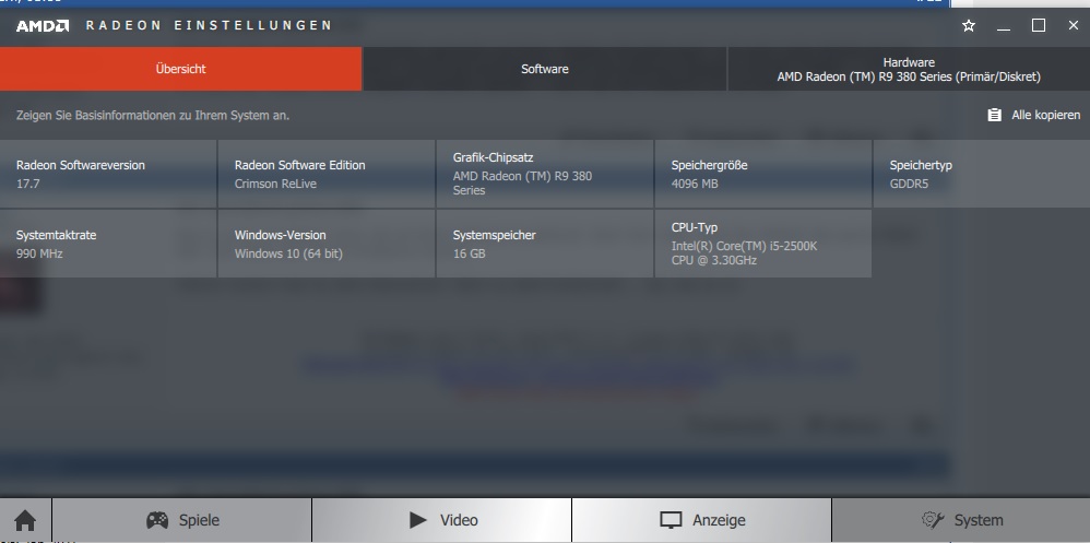 Grafikkarte : AMD Radeon (TM) R9 380 Series