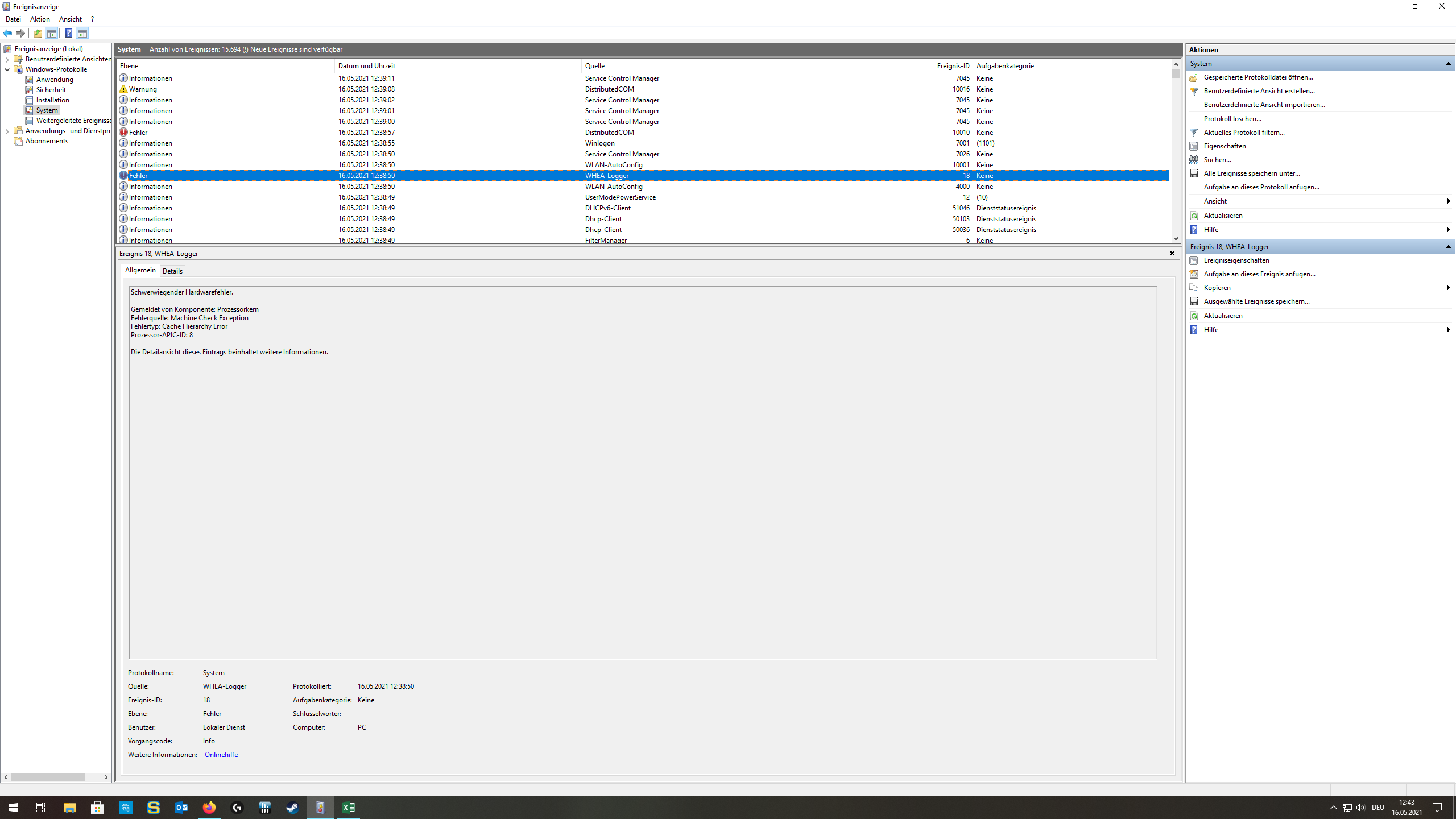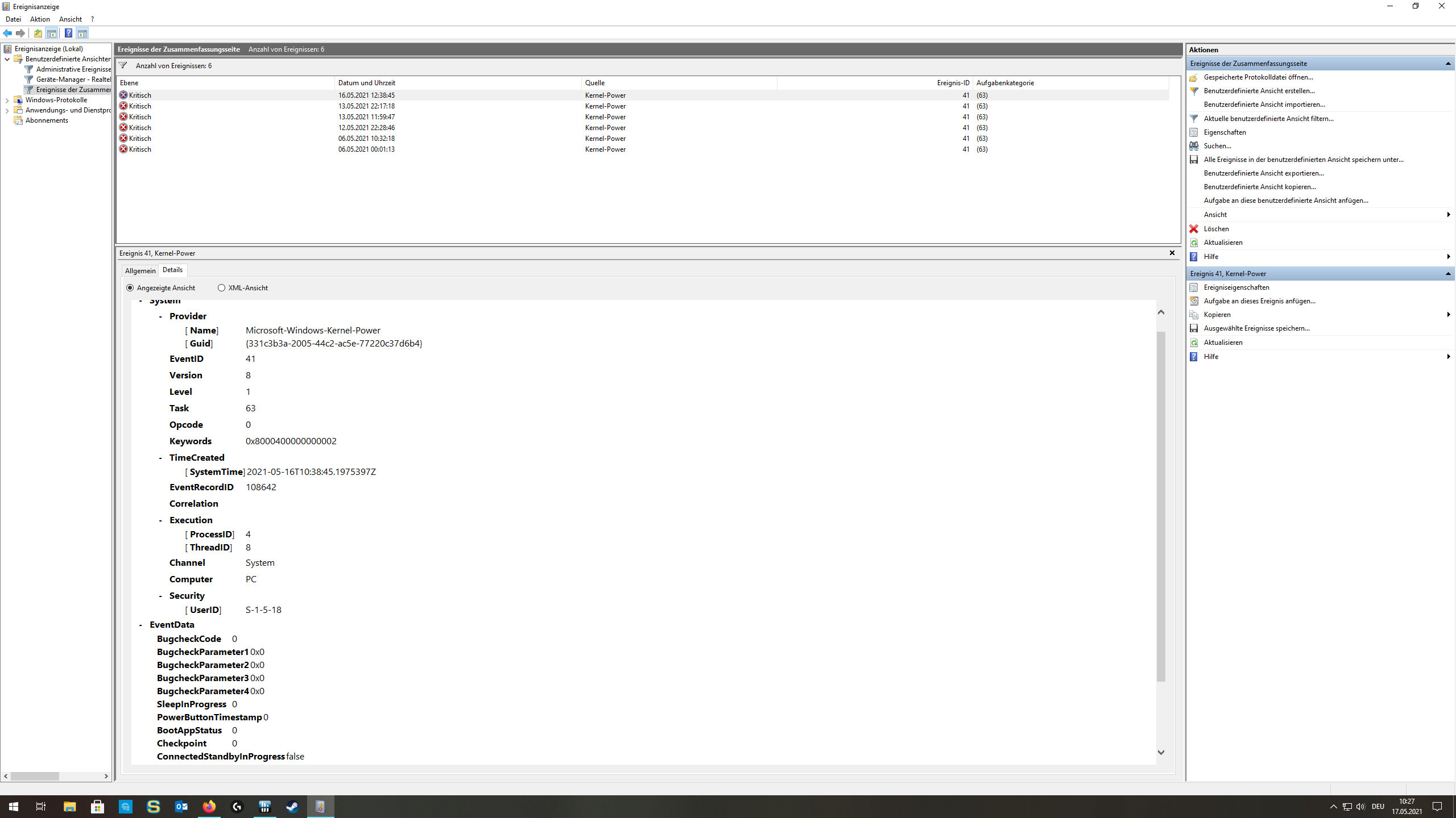 Anbei ein paar Screenshots, wenn ihr andere Screenshots benötigt um mir weiterzuhelfen, mache ich diese natürlich sofort, aber ich habe keine Ahnung was diese ganzen Ereignisse und Codes bedeuten.