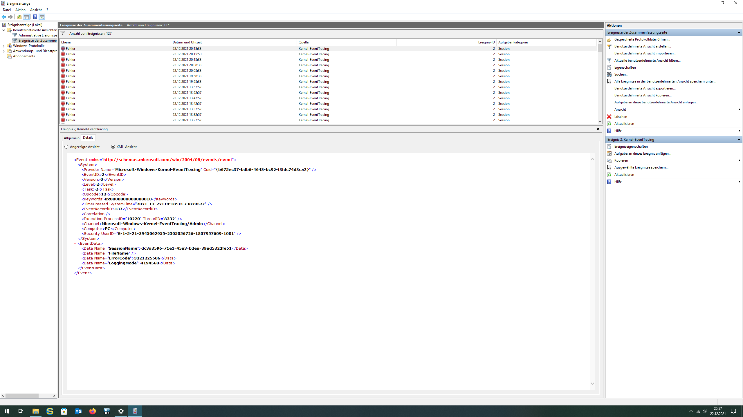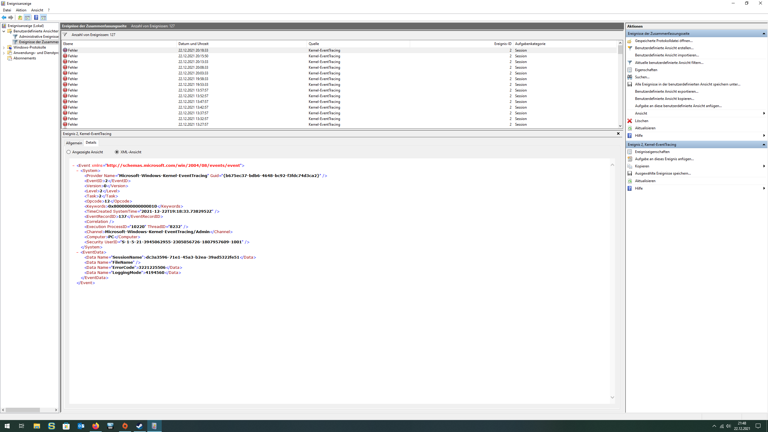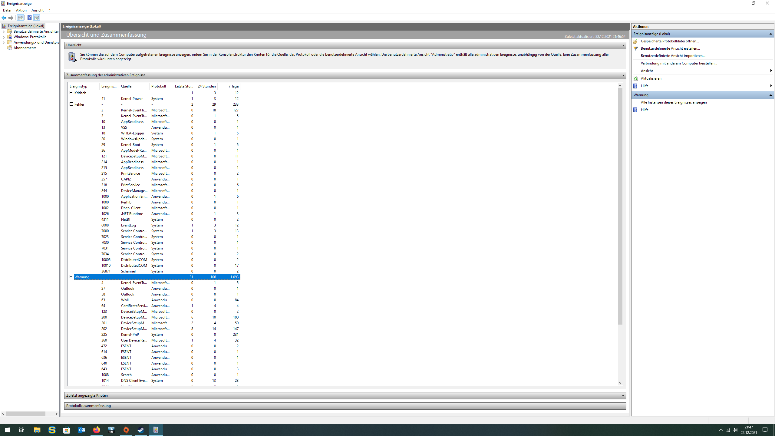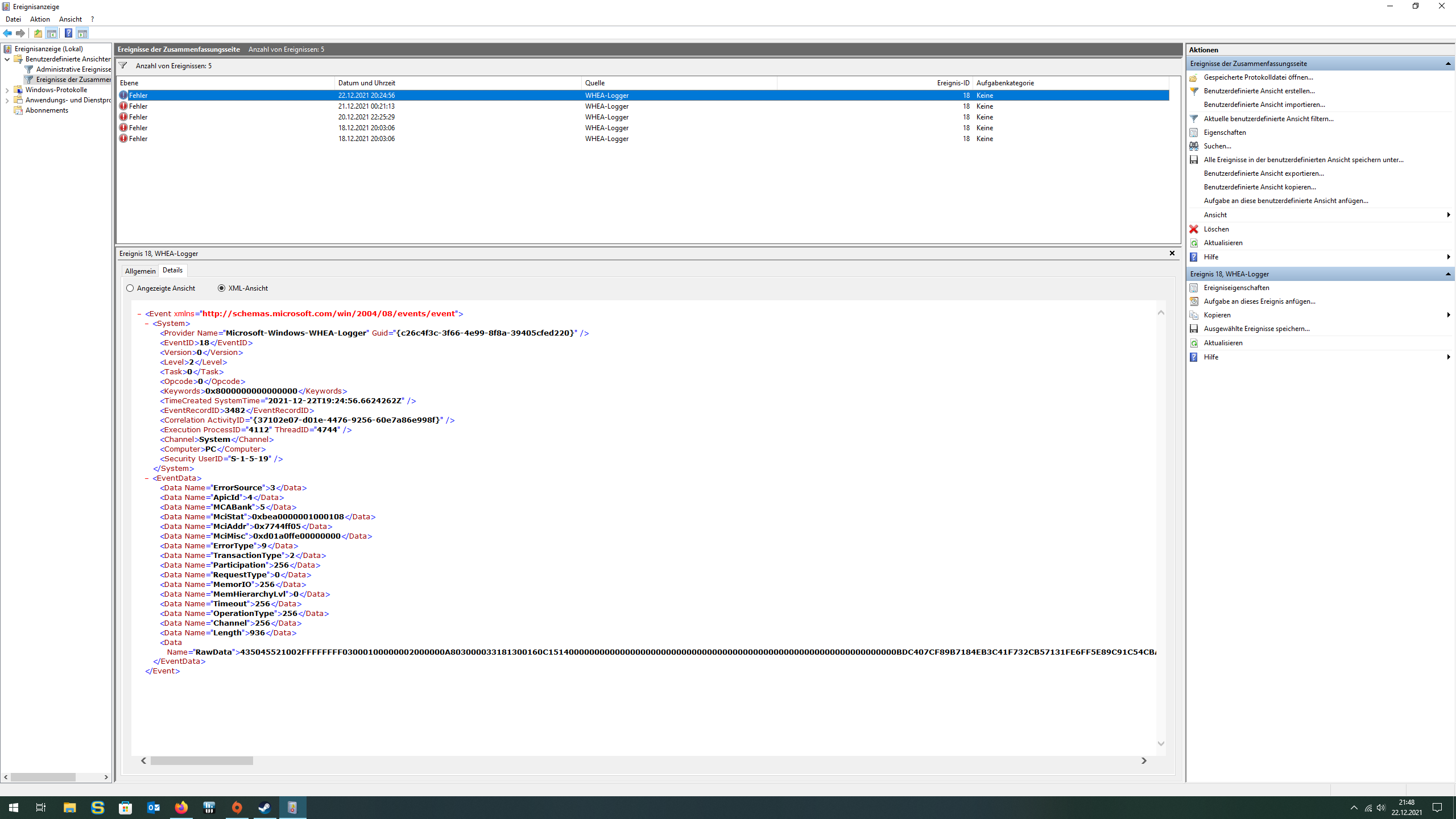 - Was sagt der Zuverlässigkeitsverlauf aktuell? (>Screenshots bitte) - Ich finde die Screenshots im Post ja ganz löblich - allerdings ist die ganze Kette an Ereignissen vor dem Absturz interessant, da der Fehler nicht 100%ig aussagekräftig ist...