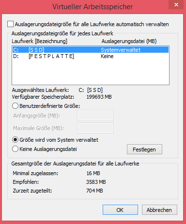 Auf der Samsung EVO 850 SSD mit 250GB läuft Windows 8.1, auf der Seagate SSHD mit 1TB sind meine ganzen Daten, Spiele etc.