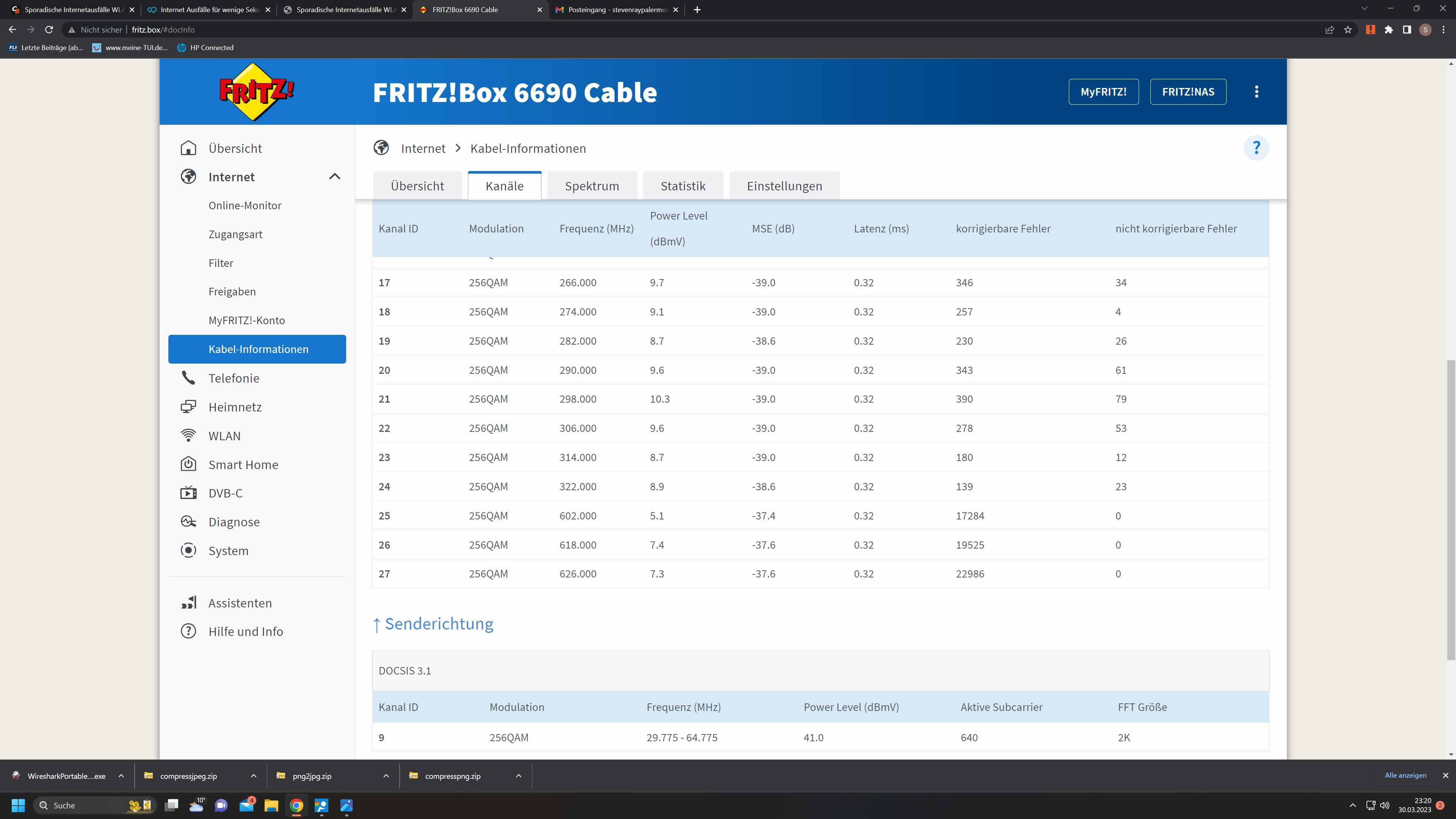 3x Router Tausch + 3x Techniker (gleicher Techniker seit Anfang an)Der Techniker meinte im Haus selbst sei alles In Ordnung. Er gehe davon aus , das Problem käme von außen vom Frequenz Kanal OFDMA. Dieser müsste abgeschaltet werden. Dieser wurde nun auch abgeschaltet seitens Vodafone , aber das Problem besteht weiterhin. Ich bin Ratlos und weiß nicht mehr weiter. Vodafone selbst ist auch anstrengend ,da oftmals Tickets einfach geschlossen werden wenn sie von Ihrem System her nichts finden und man erneut eins aufmachen muss. Ich füge euch mal ein paar Screenshots hinzu. P.S beim Speedtest kommt auch das an was ankommen sollte und der Upload ist soweit auch ok.