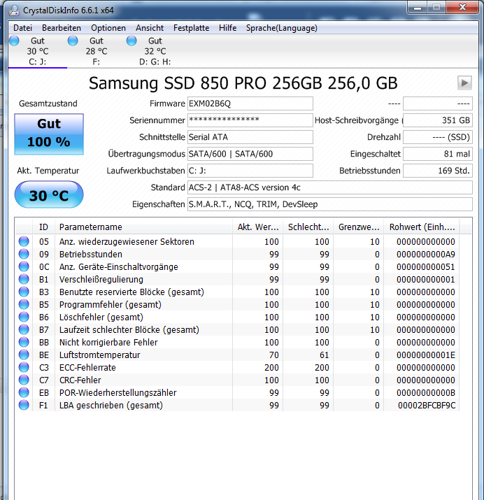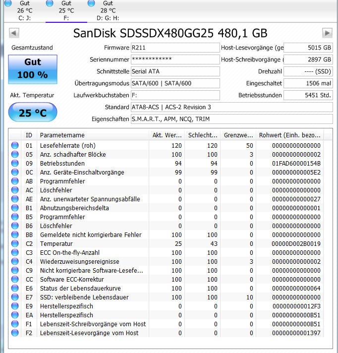 ich habe seitdem ich Windows 7 mit neuer Hardware (Graka, CPU & MaBo) installiert habe das Problem, dass seltenerweise meine Sandisk SSD bei mir in Windows 7 ausfällt und nicht mehr angezeigt wird (weder im Gerätemanager noch in der Datenträgerverwaltung). Vorher mit meinem alten System passierte das nicht.