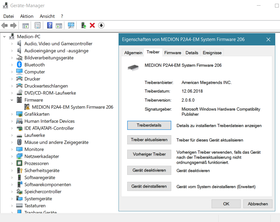 Bei dem PC handelt es sich um einen Medion Akoya, AMD Ryzen 5 1600 Six-Core Prozessor, 3.20 GHz, 16GB RAM, Betriebssystem ist Win10 Pro 22H2, Build 19045.2546.