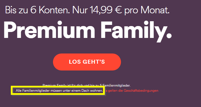 Alle Kontoinhaber müssen dieselbe Adresse haben, um den Family Plan Angebot nutzen zu können.