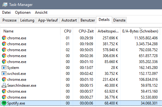 Also bei mir ließt Spotify NACH dem Update in 30min 476mb und schreibt in der gleichen Zeit 280mb OHNE das Musik gespielt wird. Nur das Programm ist offen....