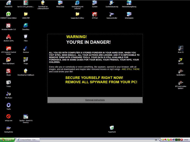 ein link auf die seite von antivirus und in der Taskleiste ein symbol das sagt You are infected!!! weiss jemand wie ich das wieder hin bekomme?