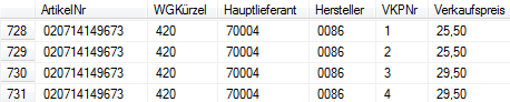 ArtikelNr WGKürzel Hauptlieferant Hersteller VK1 VK2 VK3 VK4