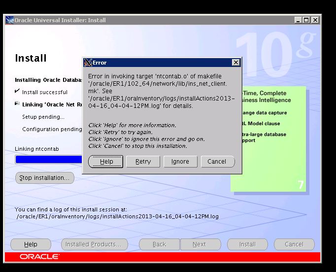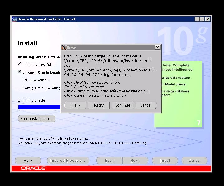 ich benötige für SAP eine Datenbank, daher wollte ich Oracle 10G verwenden. Zum Installieren starte ich normal den runInstaller, die Installation läuft auch soweit fehlerfrei durch, bis auf die unten aufgeführten wo er scheinbar gewisse Ziele nicht finden konnte. Aber wenn ich nach der Installation sqlplus starten will, kommt exakt keine Meldung, auch keine Fehlermeldung.