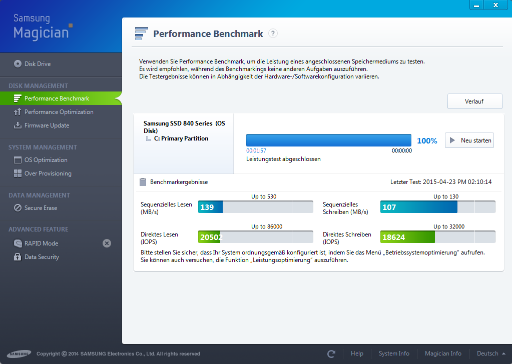 Der Vergleich hingt, denn der Verbrauch den Du um Datenblatt findest, bekommst Du bei kaum einem Auto hin und das ist trotzdem egal, da der Hersteller diesen gemäß den Vorschriften der Norm ermittelt hat. Außerdem steht in den Datenblättern immer nur "bis zu", was jeden kleineren Werrt einschlisst und mit einem passenden System kann man bei jeder Evo mit einem Benchmark wie ATTO auch jederzeit die Angaben erreichen, die im Datenblatt stehen, denn da schlägt der Bug nicht zu und eine Angabe über die Leserate alten Daten findet sich im Datenblatt nicht.Bogeyman schrieb:Wenn ich ein Auto kaufe und da steht 250kmh vmax im Datenblatt, und es stellt sich heraus über 220kmh ist nich so würde ich ebenfalls den Mangel ankreiden.