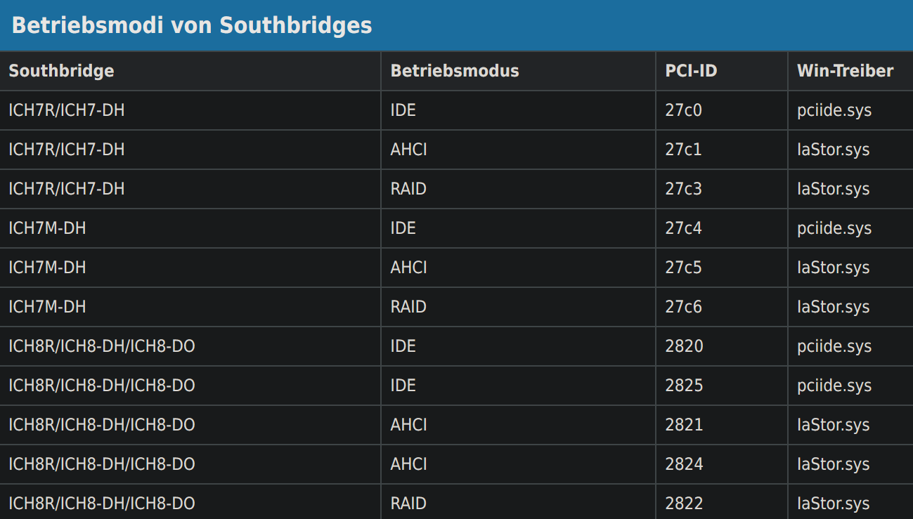 Auch in meinen neuen HP Laptop mit Uefi Bios finde ich nichts von AHCI oder RAID