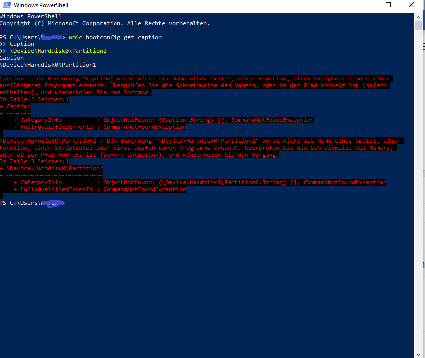 PS C:\Users\[Benutzer]> wmic os get BootDevice,SystemDevice,Name