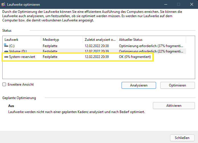 Nun fiel mir bei der Routine Defragmentierung der HDD auf, dass meine SSD jetzt für eine HDD gehalten wird.