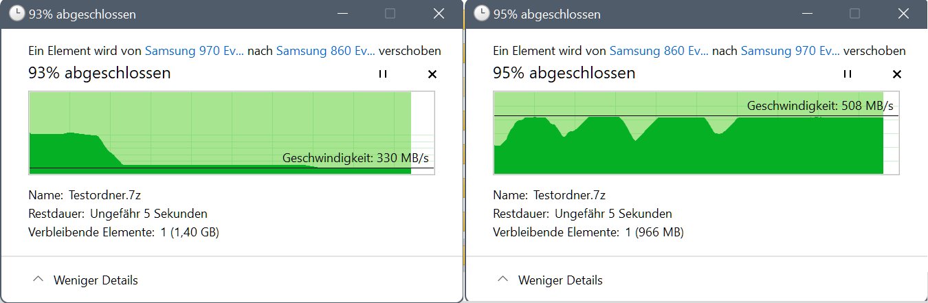 Beides sind interne SSD, die 970 per M.2 angeschlossen die andere SATA. Ich verschiebe von der 970 auf die 860.