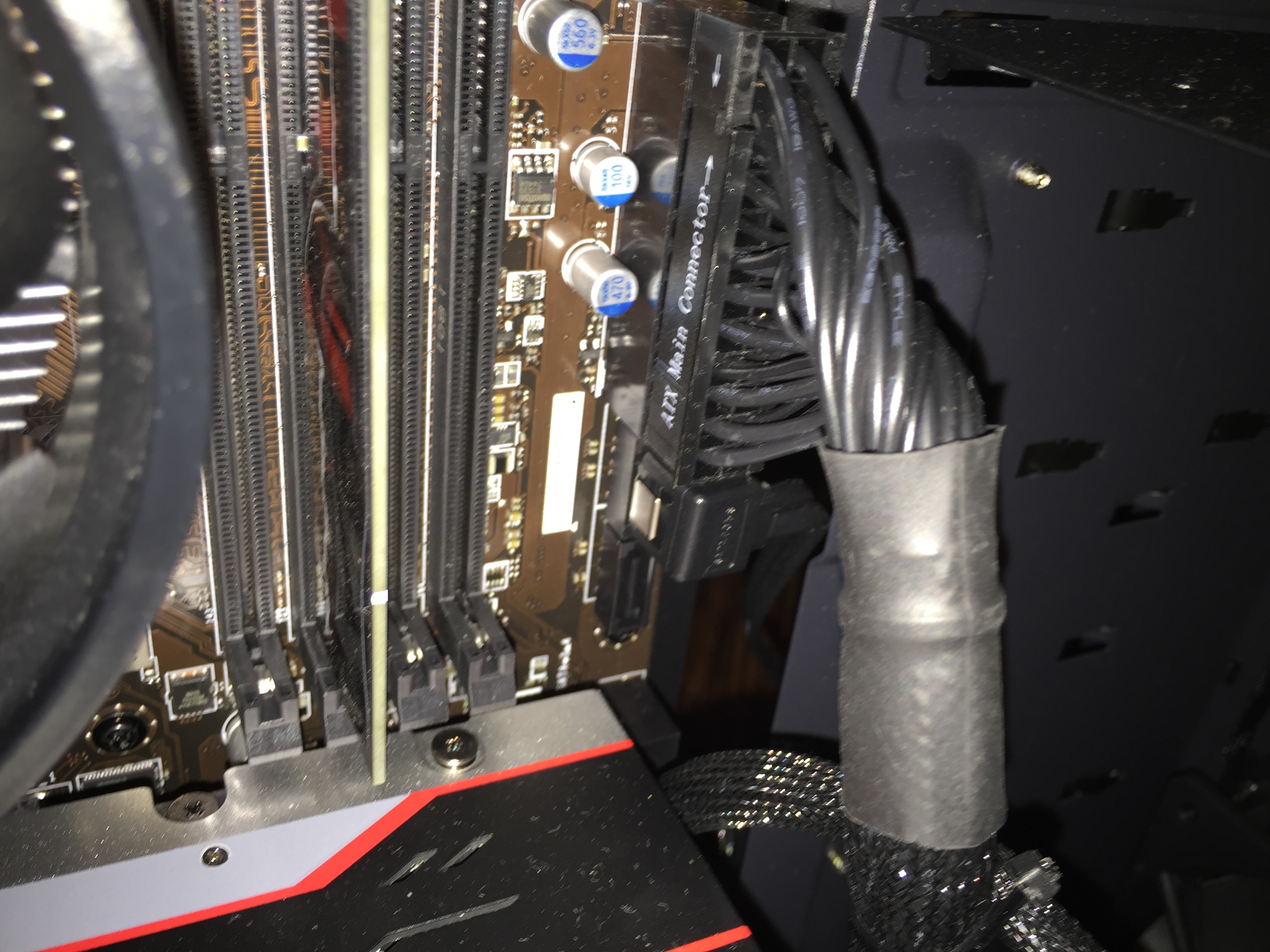 Das Problem wird wohl sein, dass ein Kabelbinder für SATA und die Kabel des Netzteiles verwendet wird und sich diese, sobald das Gehäuse wieder geschlossen ist, verschieben.