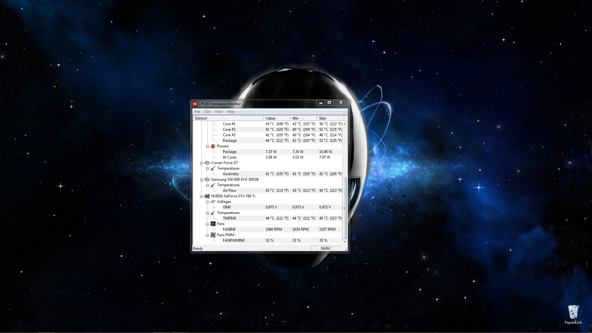 Mit den 2x 60mm lüftern hinten habe ich sie schon 10 grad runter bekommen aber so langsam gehen mir die ideen aus