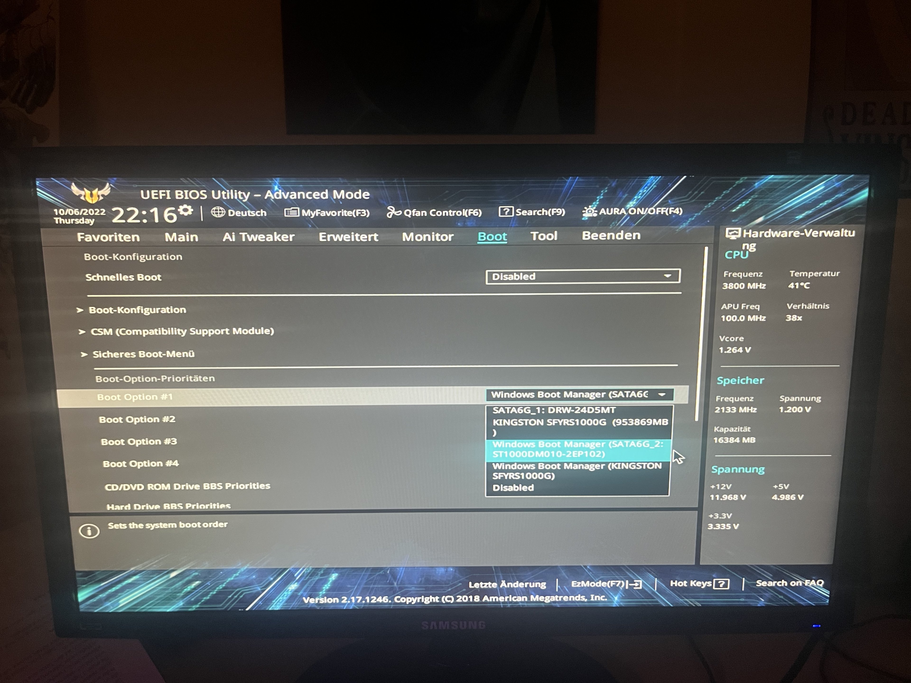 Tut mir leid, ich weiss gerade nicht was du mit live system meinst. ich kann im UEFI nur folgendes auswählen zum booten (siehe bild)Twostone schrieb:Ok, einfache Schrittfolge. Dein Windows kennt jetzt die Platte. Hast Du ein Live-System (nicht Dein aktuelles Windows), von dem Du booten kannst, um Deine primäre Platte zu klonen? Davon solltest Du dann auch booten, um die Platte zu klonen, wenn's unproblematisch und vollständig sein soll