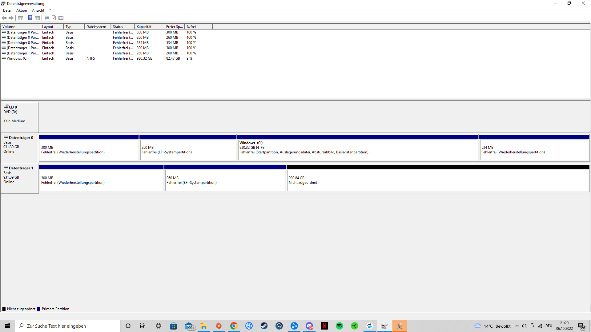 Warum sollte die Angezeigt werden, wenn Du die gelöscht hast?Rayyy schrieb:Habe jetzt neu gestartet, aber es zeigt mir die SSD nicht an