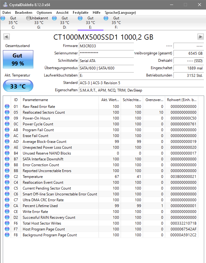Es handelt sich um eine MX500. Weis jemand woran es liegen kann?