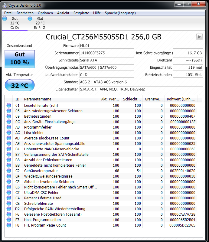 Ich sehe auch gerade das mir HD Tune anzeigt die SSD läuft über einen SATA II Port, muss das nochmal überprüfen. Aber selbst wenn die Platte an einem SATA II Port hängt sollte die Transferrate nicht so abgehen, oder?