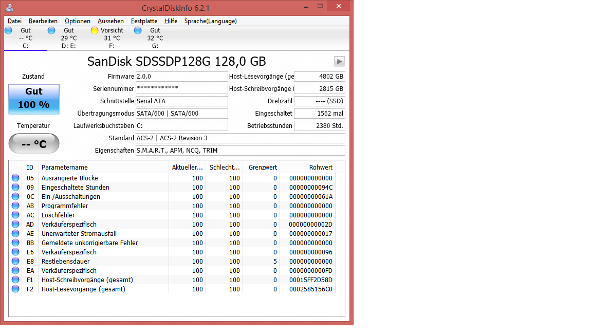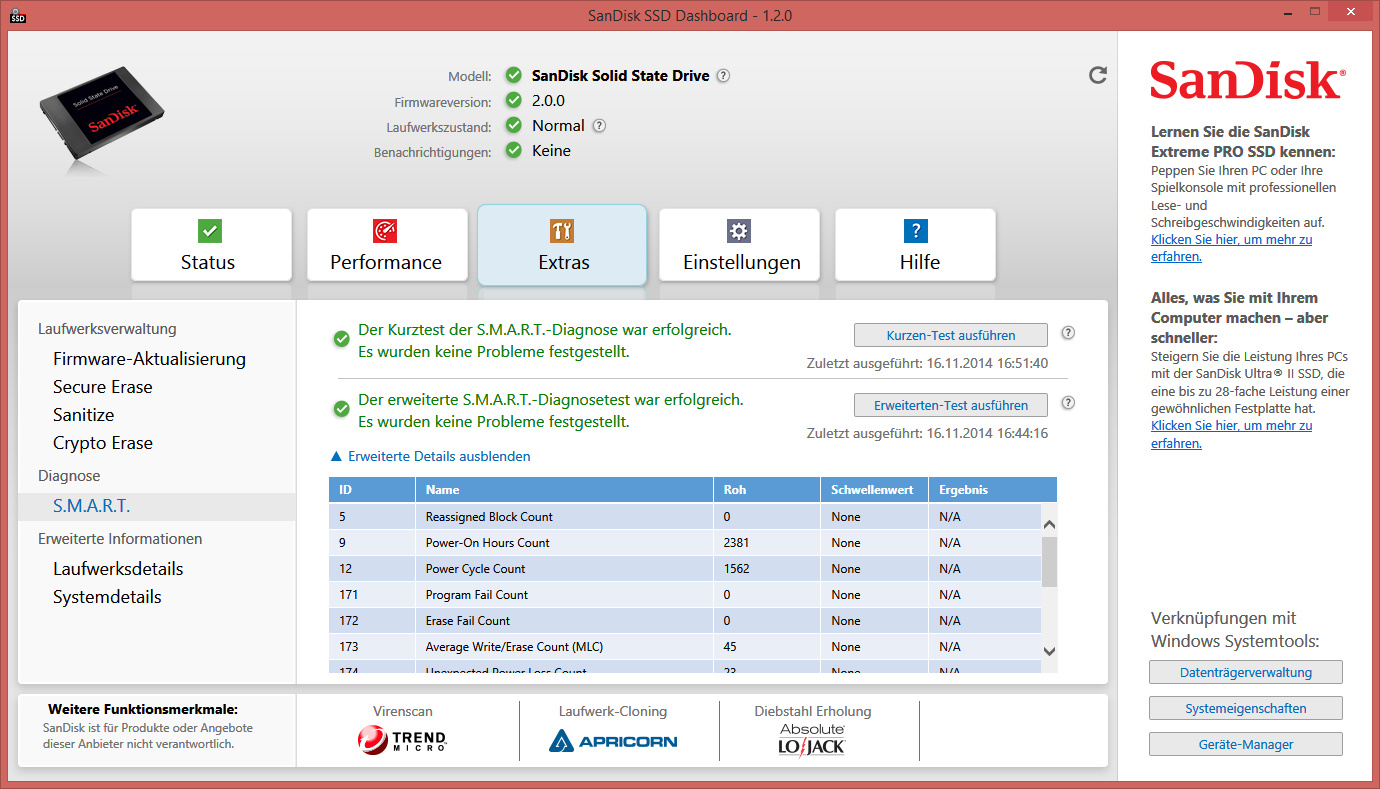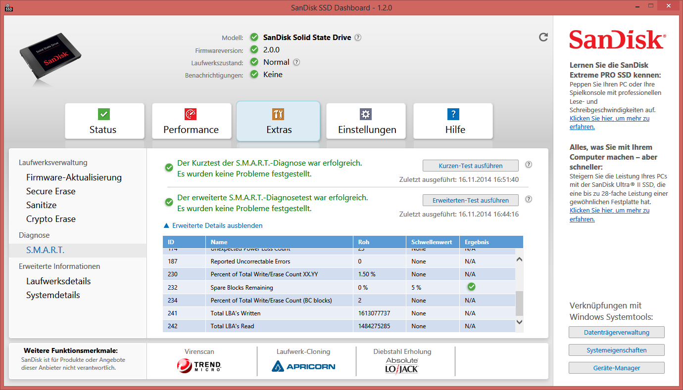 meie Sandisk SSD verursacht eine Auslastung von 100%. Nach dem versuch eines Benchmarks mittels AS SSD habe ich lediglich
