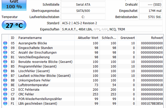 Bei mir(Samsung SSD 830-128GB, 2 Jahre alt - 3 Jahre Garantie) sieht es so aus: