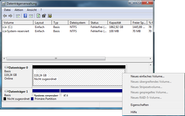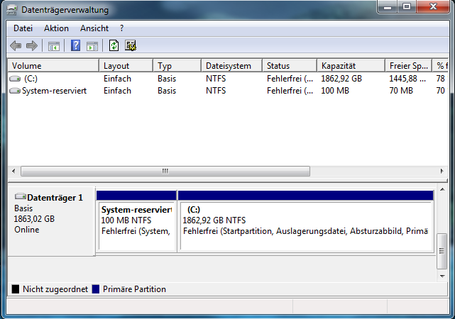 ich habe vorhin meine SSD (OCZ VERTEX4 ATA Device) eingebaut und mit SATA3 angeschlossen. Nun wo ich den PC gestartet habe, wurde sofort ein Treiber installiert und es kam die Meldung, dass es nun einwandfrei funktioniert und verwendet werden kann. Danach wollte ich gleich etwas auf die neu eingebaute SSD packen und musste feststellen, dass sie nicht angezeigt wird: Gleich nach dem Problem im Internet gesucht, Schritte zur Behebung verfolgt, aber ich komme nicht weiter. Der letzte beschriebene Schritt war immer "SSD in der Datenträgerverwaltung unter [...] formatieren".