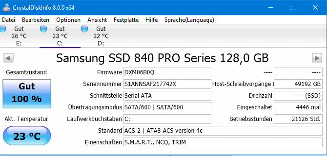 Ist da sonst noch etwas zu beachten oder einzustellen (zu optimiern damit die SSD möglichst lange hält)? Gibt es da nicht sogar ein Tool (Name leider vergessen) was prüft inwieweit Windows optimal für die SDD eingestellt ist bzw. solche Einstellungen tätigt?