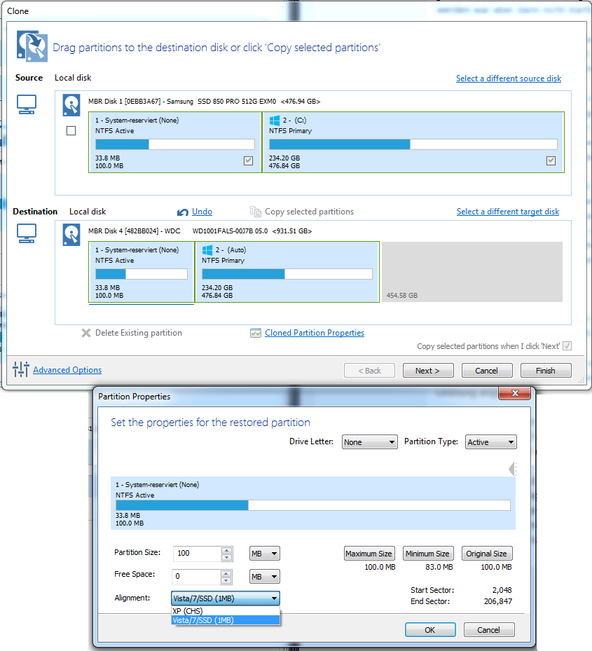 Daher ersteinmal eine generelle Frage: Hat hier schon einmal jemand von einer HDD einen Umzug auf eine SSD gemacht wo bei der HDD-Partition aber das Offset nicht geeeignet war bzw. das Offset während des Umzugs auf die SSD angepasst wurde (egal mit welchem Image-Tool)?