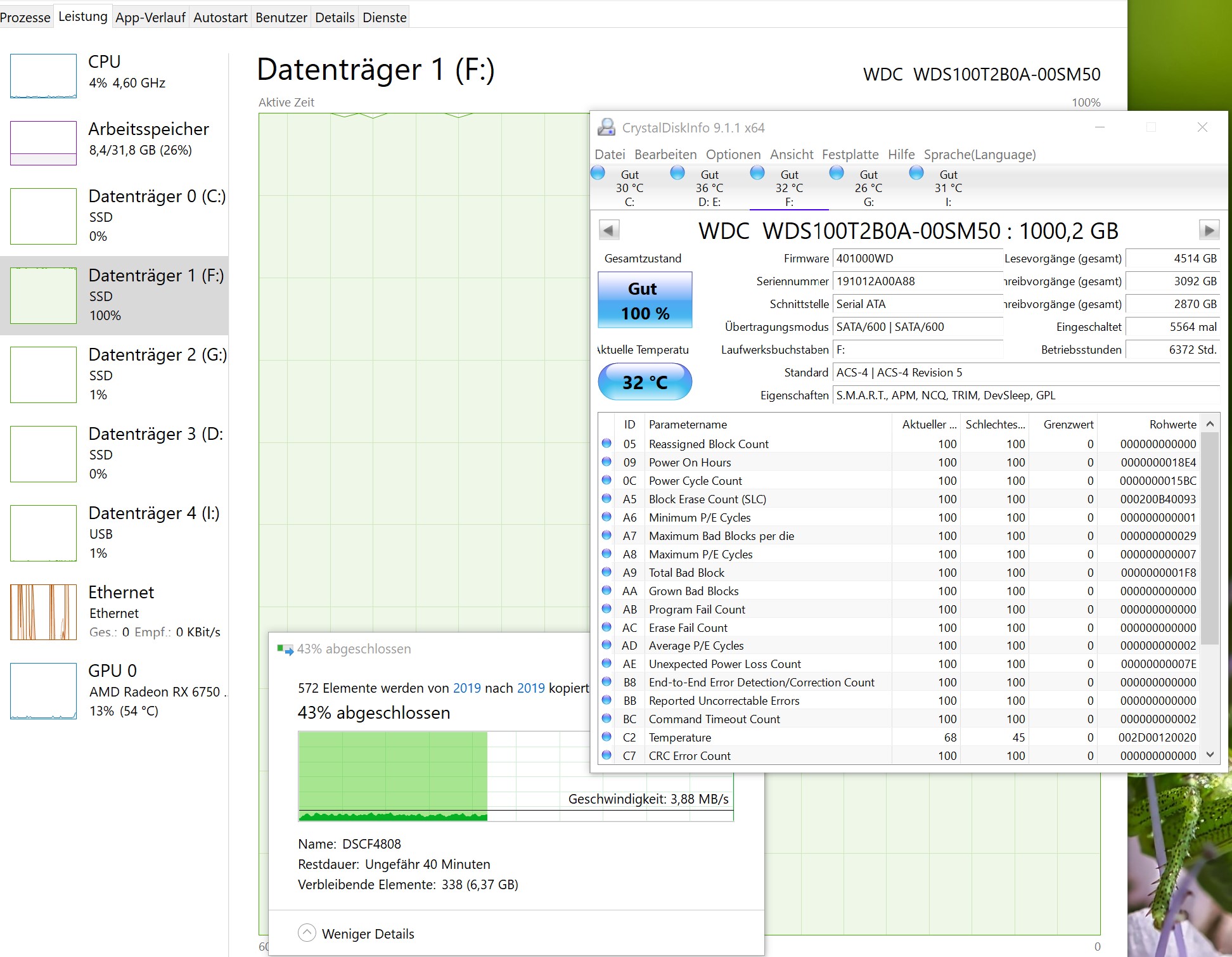 Auch wenn ich Bilder von der WD SSD auf eine externe SSD kopieren will, schleicht das vor sich hin.