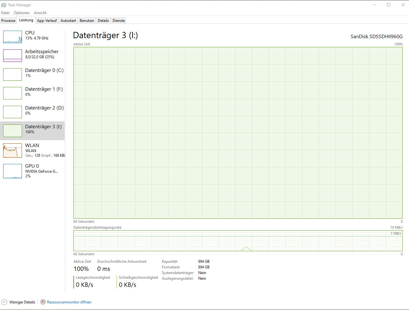 Allerdings habe ich häufig, dass eine SSD öfter für 10-30 min auf 100% ausgelastet ist, jedoch weiß ich nicht wieso.