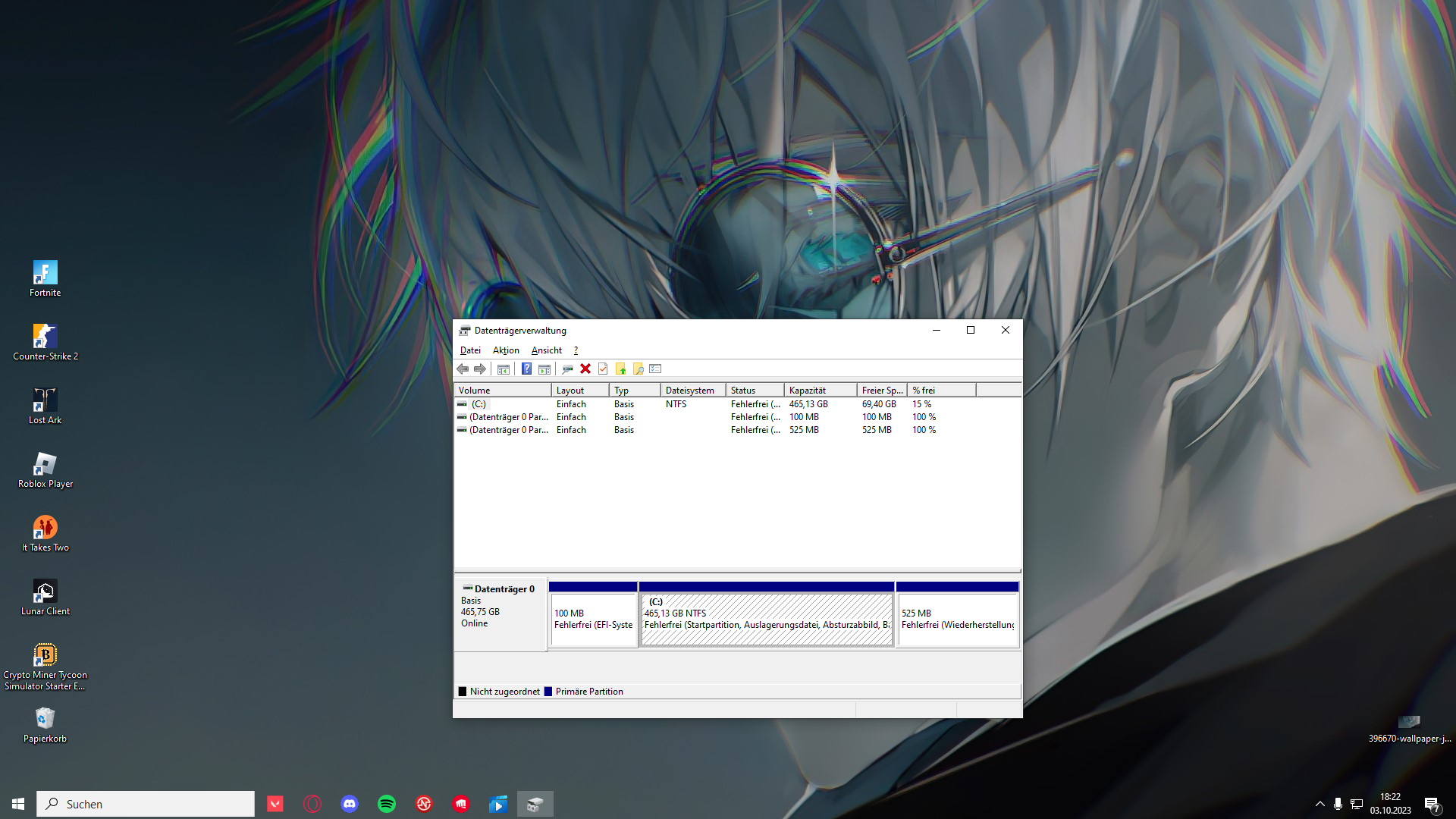 Screenshot von der Windows Datenträgerverwaltung bitte
