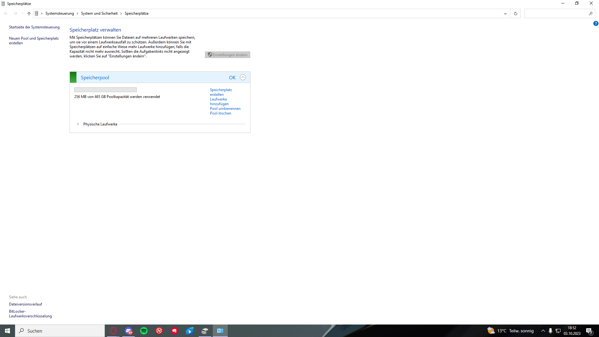 Da im Speicherpool ist deine SSD, Lösch die da mal raus (auf Pool löschen klicken) und schon sollte sie auch in der Datenträgerverwaltung unten in der Balkensicht auftauchenFlamez schrieb:mein bad.