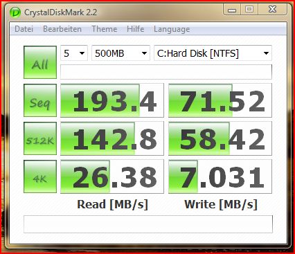 Maximal sind schon 260MB/sec im Lesen und 195MB/sec im Schreiben zu erreichen ^^