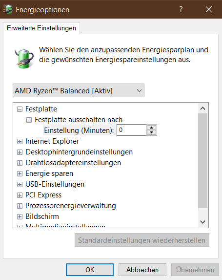 Energiesparplan habe ich schon zurückgesetzt. Keine Änderung.