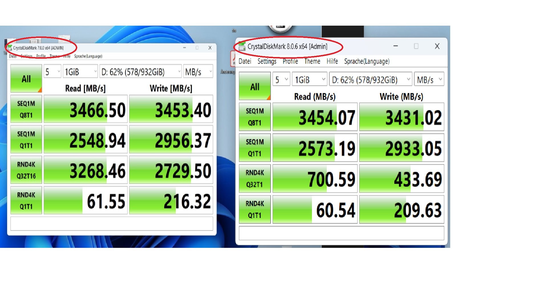 Diese Benchmarks sind für Laien aber bedingt aussagekräftig. Hab das eben zum Spaß mal über meine Crucial T700 NVMe und eine klassische Crucial MX500 SSD laufen lassen. Links die T700.