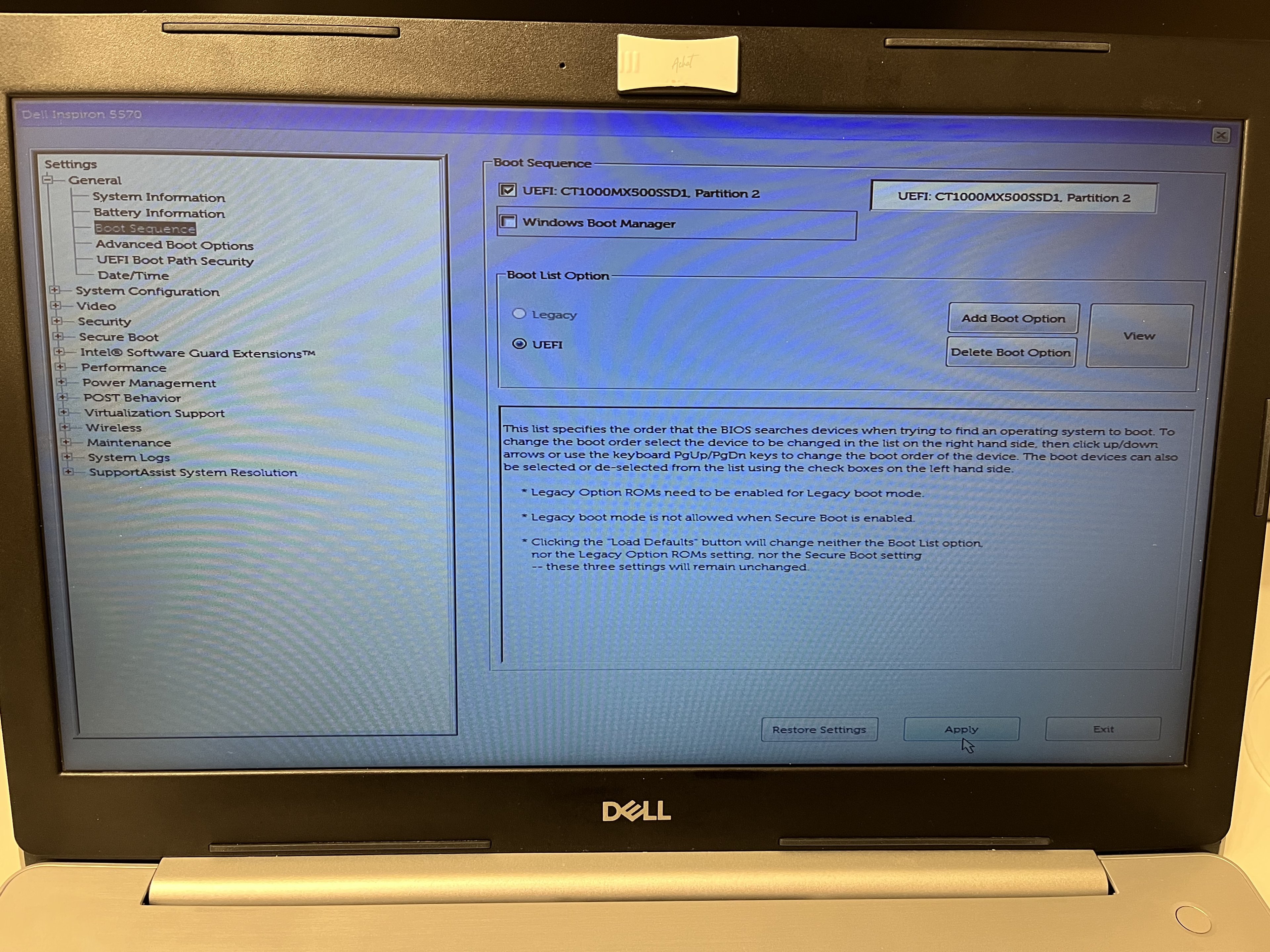 "UEFI CT1000MX500SSD1, Partition 2" setze, von der neuen SSD (1 TB) gebootet