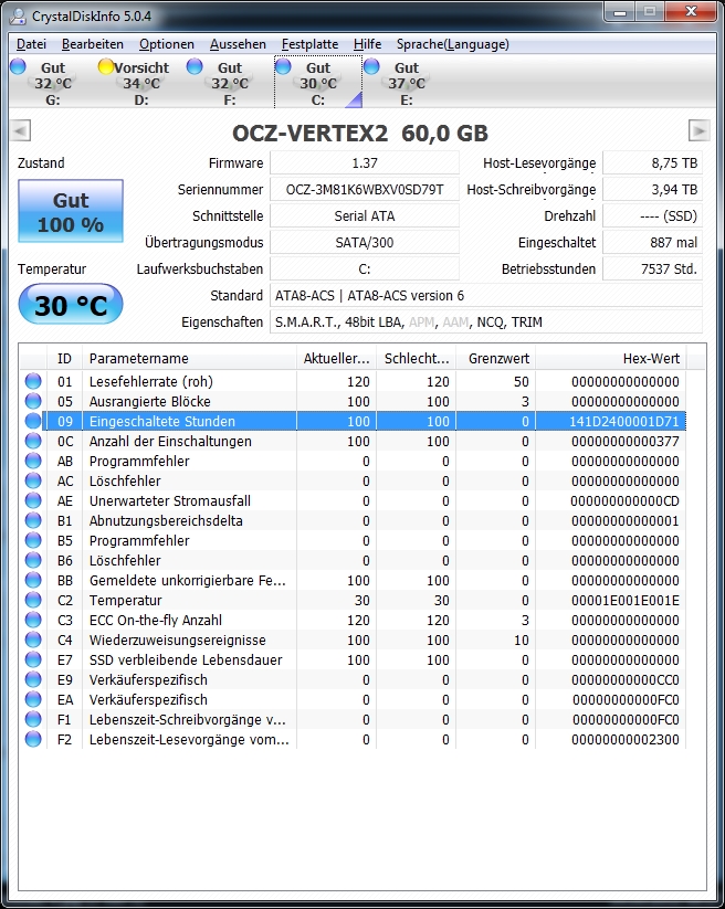 2, das ist ein wichtiger Zusatz, denn die Vertex ist eine ganz andere SSD mit einem anderen Controller, ebenso die Vertex 3 und 4. Gib also bitte immer die 2 mit an, sonst gibt es Verwirrungen!